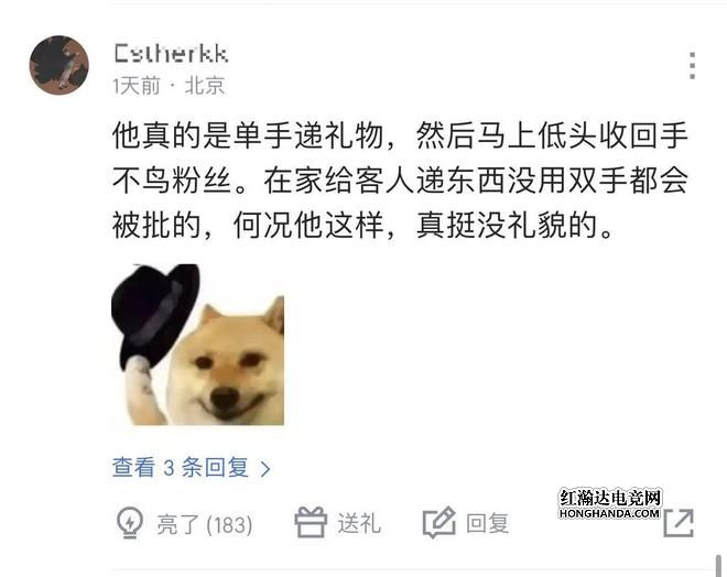 还有网友讲到了light在粉丝见面环节的一些细节,表示他每次都是单手递礼物,然后马上低头收手,不理粉丝,真的很没有礼貌。