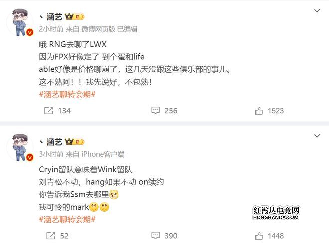 首先是涵艺透露:cryin留在IG,那么wink也会留队,刘青松也会留队,如果Hang也留在LNG,那么ON也继续在BLG,所以ming只能选择TES。接着他表示:RNG聊了lwx,因为FPX买了韩援下路Deokdam和Life,而Able则是价格没谈好,不过RNG还在和Lwx谈,还没确定。