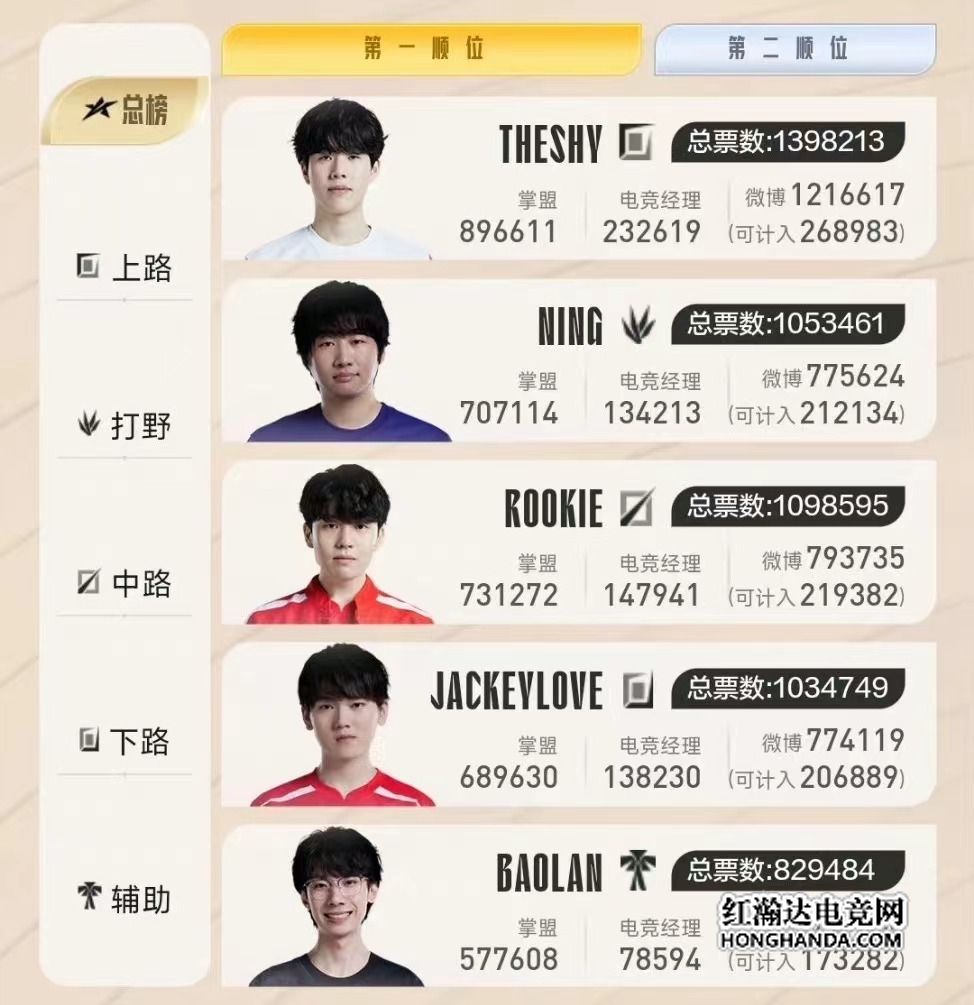 而就在昨日,全明星选手的投票正式结束,Theshy也是不出意外的成为了今年最受欢迎选手,而这已经是他第五次霸榜了,可见粉丝们对他的喜爱。最亮眼的数据,就是Theshy后面紧跟的四位选手,Rookie,Ning,阿水还有Baolan,当年的仁川IG再度集合,尽管今年只有Theshy一人成绩出彩,尽管他们已经身在各个队伍,观众们依旧记得那年。