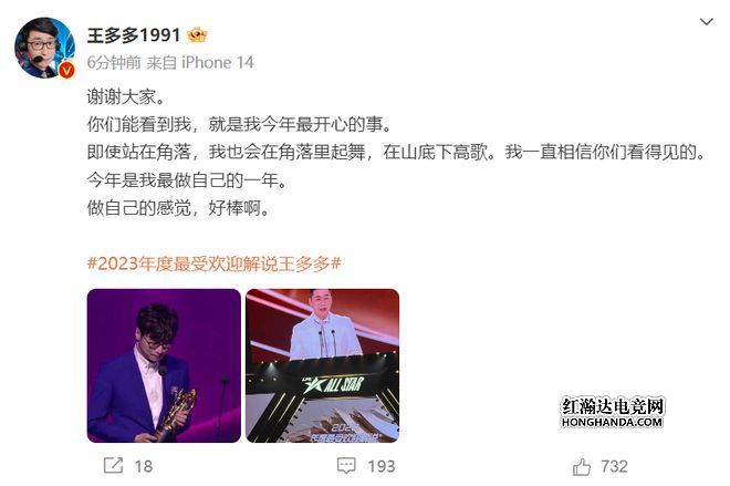 王多多也在赛后专门发文感谢大家的支持,表示谢谢大家能够看到 自己,今年是最做自己的一年,感觉非常棒。