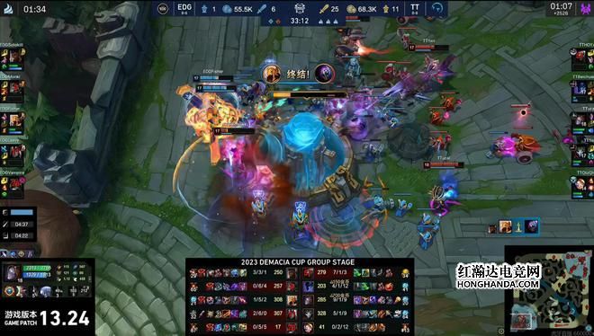 第一局EDG迎战TT,除了上单发挥不错之外,其他位置都疯狂失误,TT这边辅助选出了机器人,可以说是把EDG的几个人完全限制了,钩子的命中率非常高,EDG这边走位失误很严重,最终首局惨败。