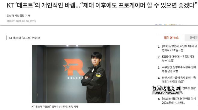 Deft的采访原文如下,标题就是Deft表示希望退伍后可以继续做职业选手。在采访中,Deft表示2023年自己的状态并不好,但是看到Faker依然可以拿到如此高的荣誉时,自己受到了很多积极的启发,觉得自己也可以做到。而谈到即将服兵役一事,Deft也主动表示:赛季结束后将去服兵役,我的个人心愿是希望在服完兵役后还可以继续打职业。