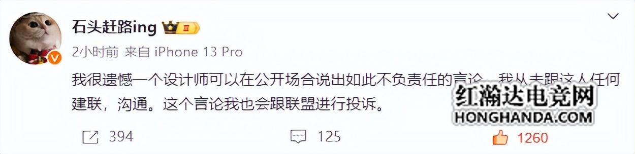 看得出来,石头老板还是很愤怒的,已经准备向联盟进行投诉,毕竟自己没有说过的话,被别人强加上去,多少有些不适合。