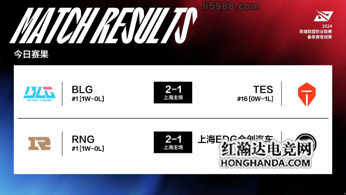 2024LPL春季赛揭幕战BLG和RNG拿下开门红