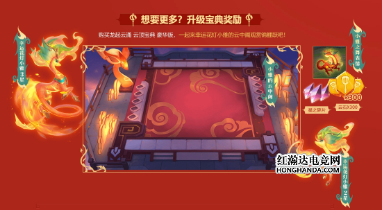 想要获得更多“年味”的奖励吗?快来开启〖龙起云涌 云顶宝典〗吧!在普通宝典中,弈士们就能够通过免费任务获取〖幸运花灯 小雅 1星〗。而升级〖龙起云涌 云顶宝典〗豪华版,弈士们不仅可以获得〖小雅的云中阁〗棋盘,同时还有〖红包滚滚 进攻特效〗、〖绚烂烟花 进攻特效〗以及〖锦鲤跃 进攻特效〗!另外,还有大量的星之碎片、云石、小小英雄在豪华版中等待着大家!