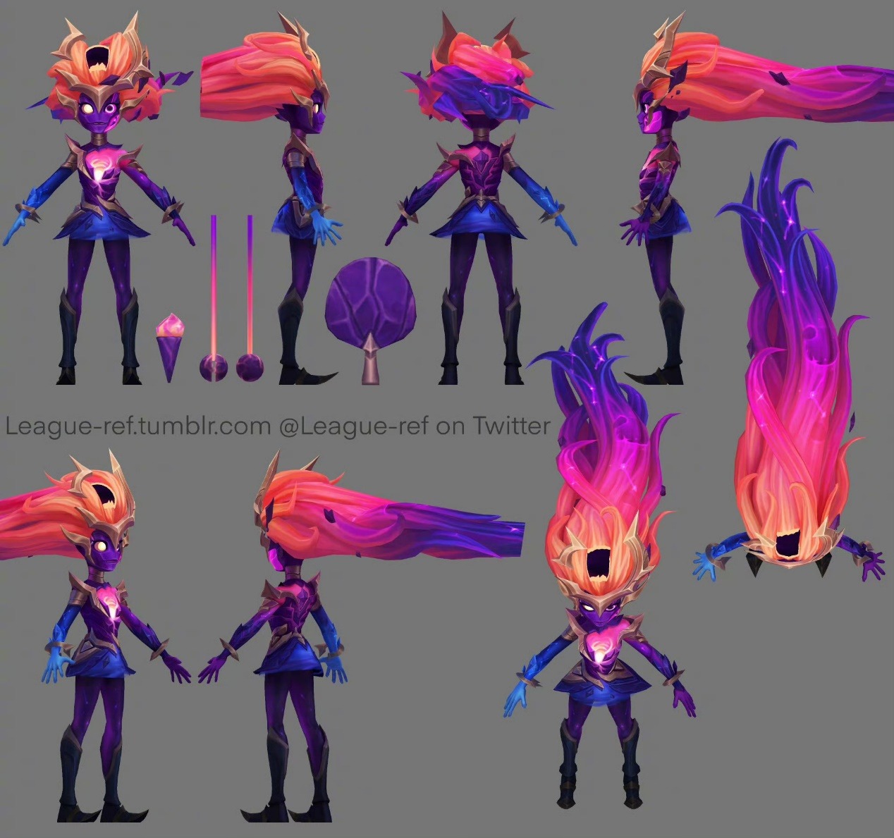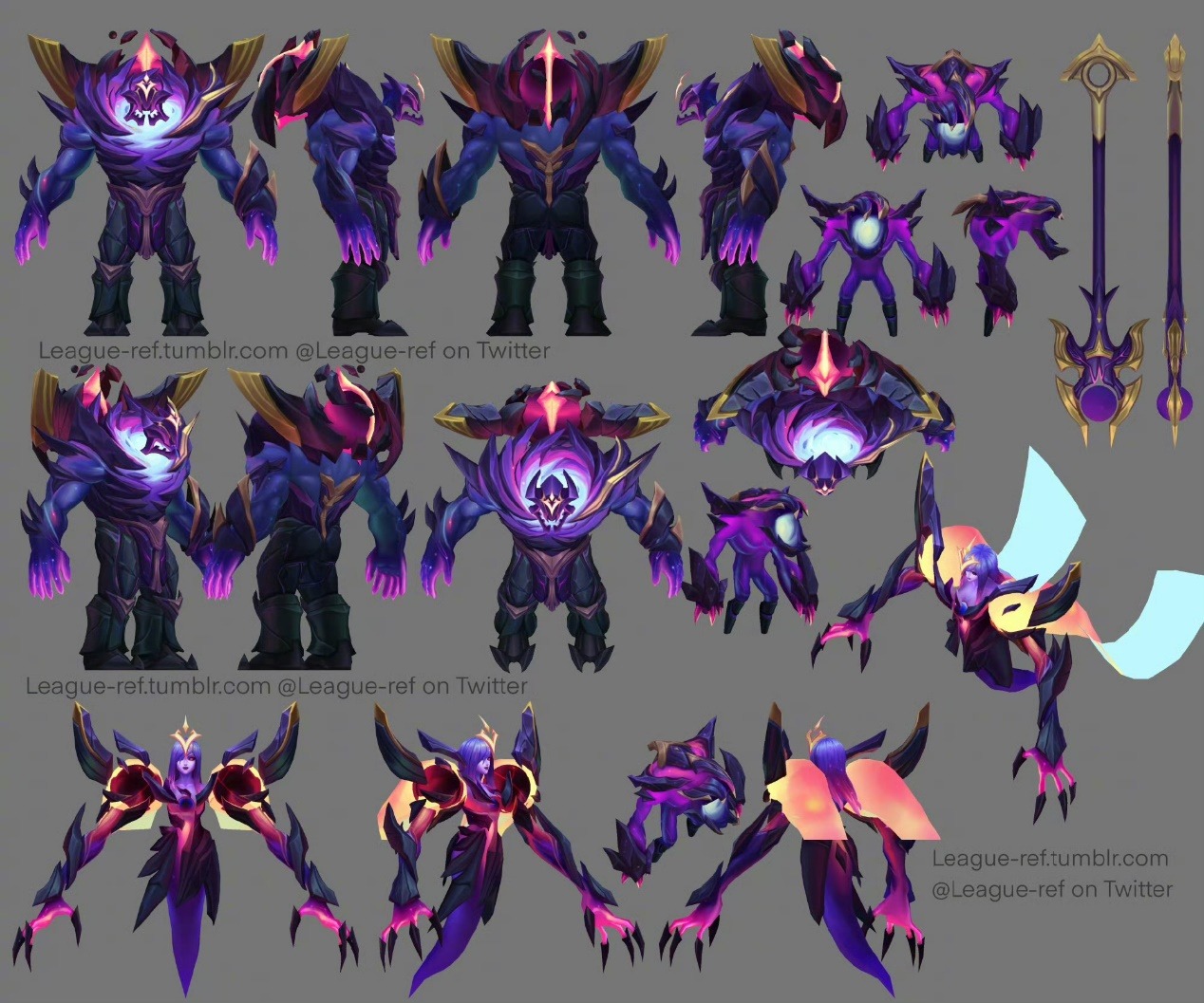 昨日,联盟曝出了将要上新的暗星系列皮肤的模型图~