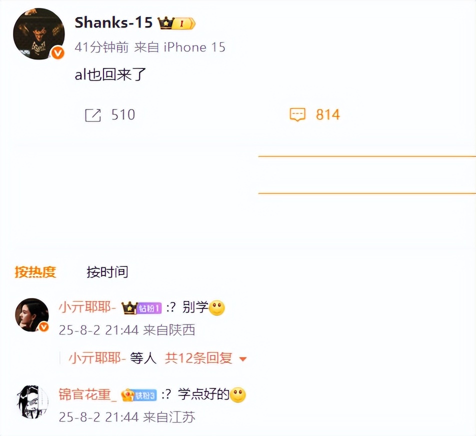 而AL中单选手Shanks也在社交媒体上模仿BLG上单Bin的经典语录,发文称:“AL也回来了!”这一幽默而自信的宣言迅速引发粉丝热议,大家纷纷表示对AL未来的期待。不过,也有粉丝调侃道:“还是学点好的吧!”