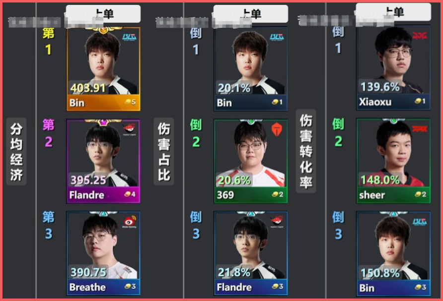 - 第三赛段上单数据出炉!TS吃草挤奶,Bin最多经济打最少输出