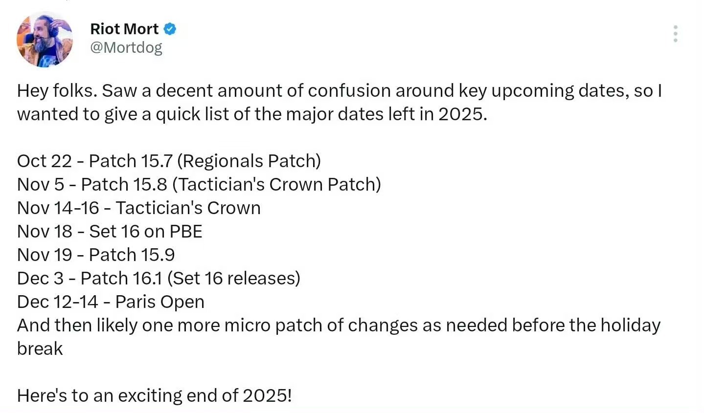 近日,云顶之弈官方表明了S15赛季延长的消息,本赛季将会有9个版本,通常是8个,而15.7版本将于10月23日上线,新赛季S16也定档为12月4日~