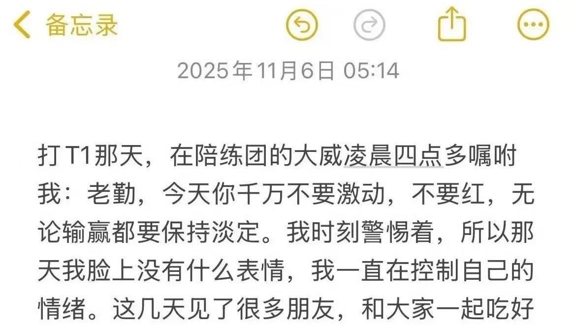 kkOma说道:从入围赛挺到决赛,这条路很不容易,但是在这个过程中,队员们获得了显著的成长,团队也愈发坚实,最终达成了理想结果,我既感激又为选手们感到骄傲。接着他也说道:选手们始终不动摇,认真履行自己的职责,这成为了我们最强大的支撑。T1能挺进决赛,归根结底依靠的是每位选手的个人努力,若想夺冠,保持这种状态十分关键。