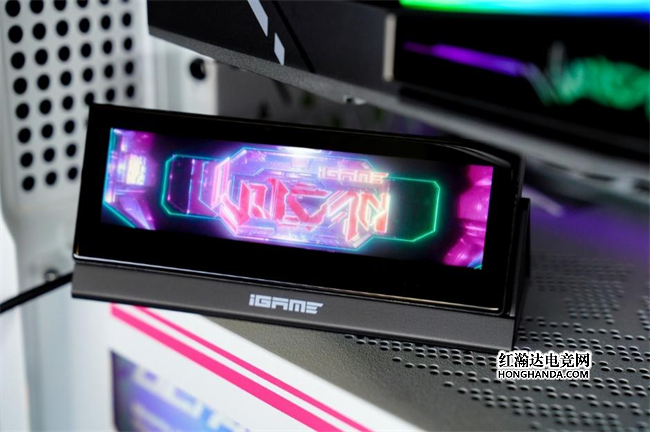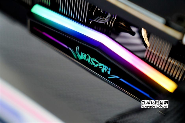 Vulcan系列标志性的LCD显示屏,进化为“智屏”,人卡交互来到新高度。这块显示屏采用无线磁吸设计,随显卡附赠智屏底座,可分离的显示屏可以通过底部和背部的磁吸触点实现横、竖两种安装方式,还贴心地附赠了Vulcan灯光组件,吸附至显卡上之后,就能随心打造个性化灯效。