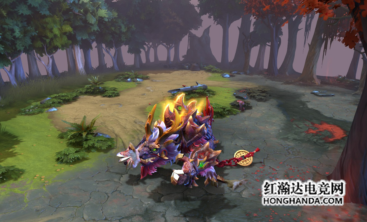 当然,Valve也并非只在金龙宝藏中加入了“龙”这一主题要素。就拿此次珍藏中獸的珍稀超凡饰品来讲,这套饰品令獸显得威严且凶猛,其头部金角与面部两侧弯曲的胡须,无疑是与“龙”元素相契合。但獸那外露、狰狞的利齿则不得不令人联想到另一个与春节有关的凶兽:年。传闻中载道:“年恶兽也,其形似狮非狮,似狗非狗。”这一形容正与本次珍藏中的獸有一定契合度。