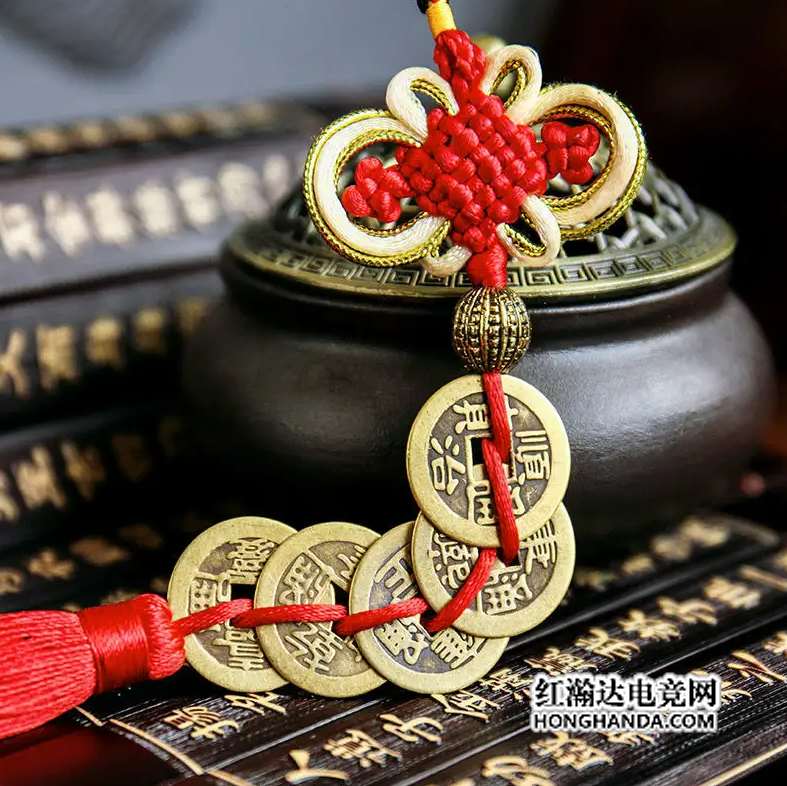 细心的玩家或许还会发现,在穿上新套装后,獸的脚部会缠绕一个系着红绳的钱币。这其中自然也有典故,自古以来红色即代表吉庆好运,佩戴红绳也代表着希望能够获得好运气的愿景。而古铜钱则蕴含有“外圆内方”、“天人合一”的理念,是古代阴阳五行学说的具体体现,拥有厚重的文化属性。五帝钱更是多用于六爻占卜,也正因如此,在中国古代民间古铜钱拥有着驱邪纳福的特性。当这两者结合在一起时,红绳穿铜币就代表着辟邪、护身的美好祈愿,这无疑也是每一位英雄在奔赴战场时心中的祷祝。