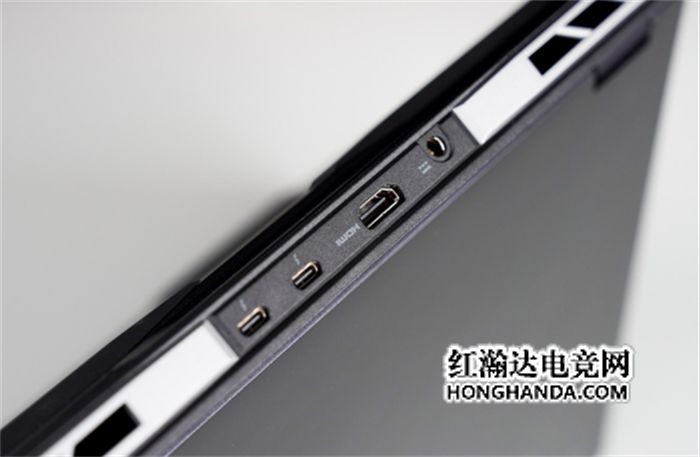 在接口方面,后面是两个雷电4接口、电源接口、一个HDMI2.1接口