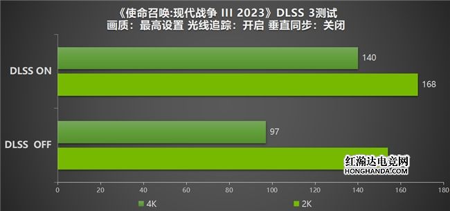游戏实测部分将为玩家提供《使命召唤:现代战争 III 2023》中,NVIDIA DLSS 3技术开启前后的帧数对比。分辨率采用2K和4K。