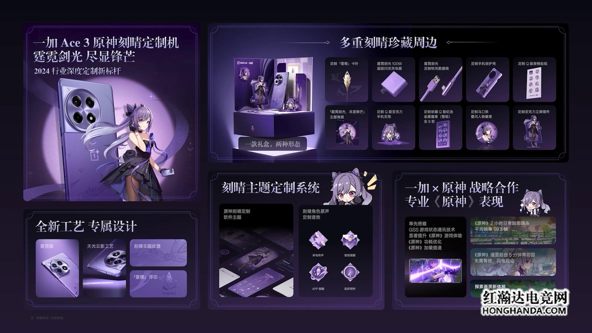 一加 Ace 3 原神刻晴定制机是一加对手机深度定制的全新诠释,借助前所未有的工艺、典藏级限定周边、沉浸的系统定制以及专业的游戏表现,打造 2024 年行业深度定制新标杆。一加手机中国区总裁李杰表示:“为了更好地呈现这款产品,一加和原神共同经历了相当漫长,也充满磨练的开发与打磨过程。我们希望,全球的旅行者都能通过这样一部定制手机,在游戏内外拥有更多新鲜、有趣的体验,遇到更多志趣相投的朋友。”