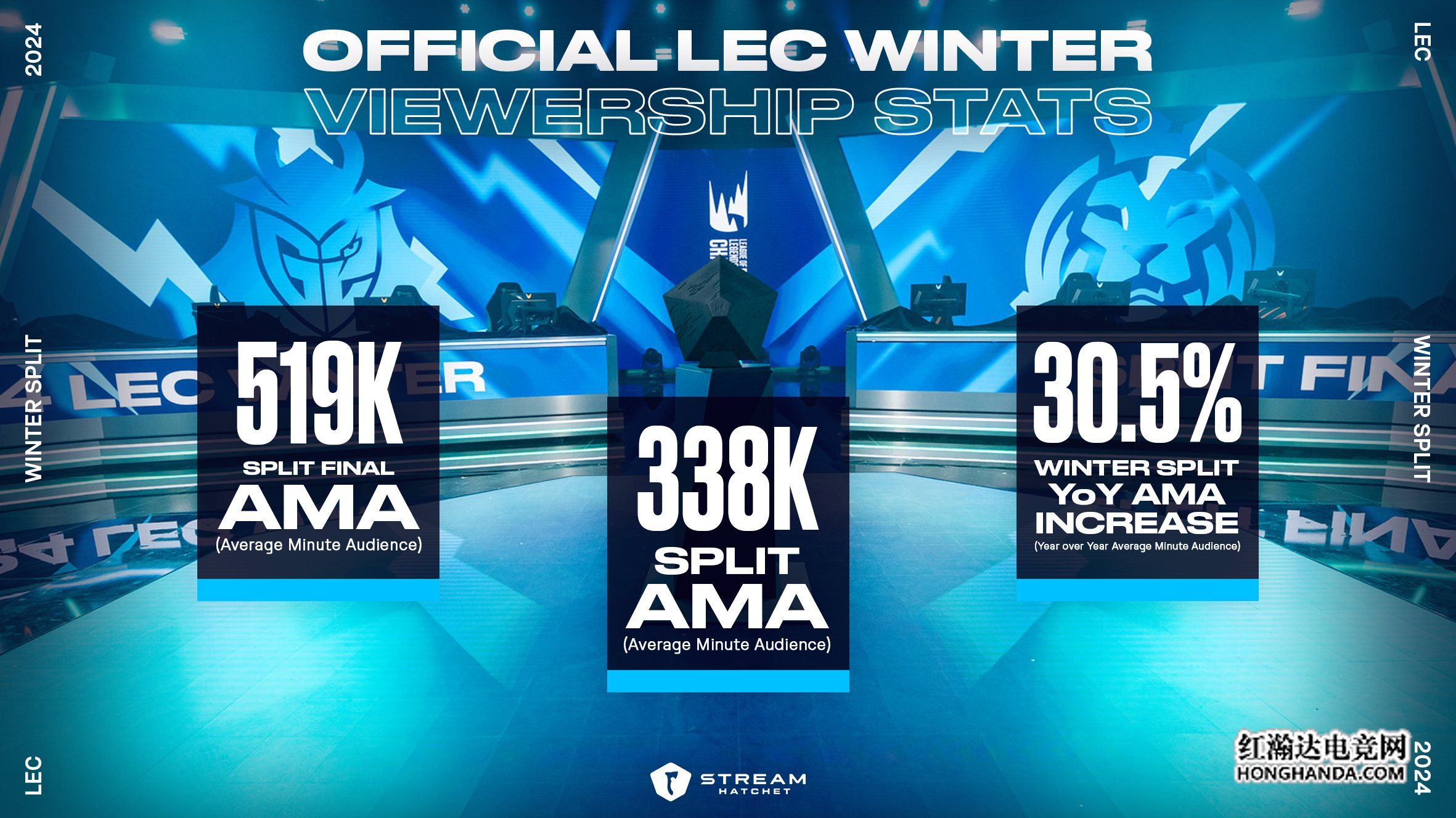 在本次LEC冬季赛上,决赛的观看人数达到519K;赛季分均观看人数338K,同去年相比增长了30.5%。