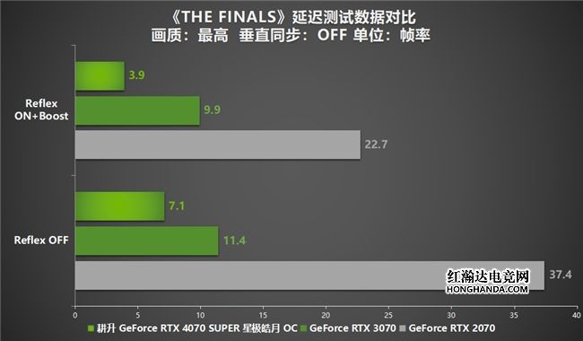 降低竞技FPS游戏系统延迟可提升操作响应速度,NVIDIA Reflex技术融合GPU与游戏优化,实时降低延迟,带来前所未有的竞技体验。通过测试数据,可以清晰地看到,当开启Reflex的增强模式后,游戏的系统延迟仅为3.9ms,与关闭情况相比,用户们的系统延迟降低了3.2ms。而在与GeForce RTX 3070和GeForce RTX 2070相比之下,优势更为显著,分别相差了6ms和18.8ms。对于《THE FINALS》这类需要迅速击杀目标的游戏来说,如此巨大的性能提升意味着用户们能够更快地反应并捕捉到目标,从而在高水平竞技中占据更大的优势。