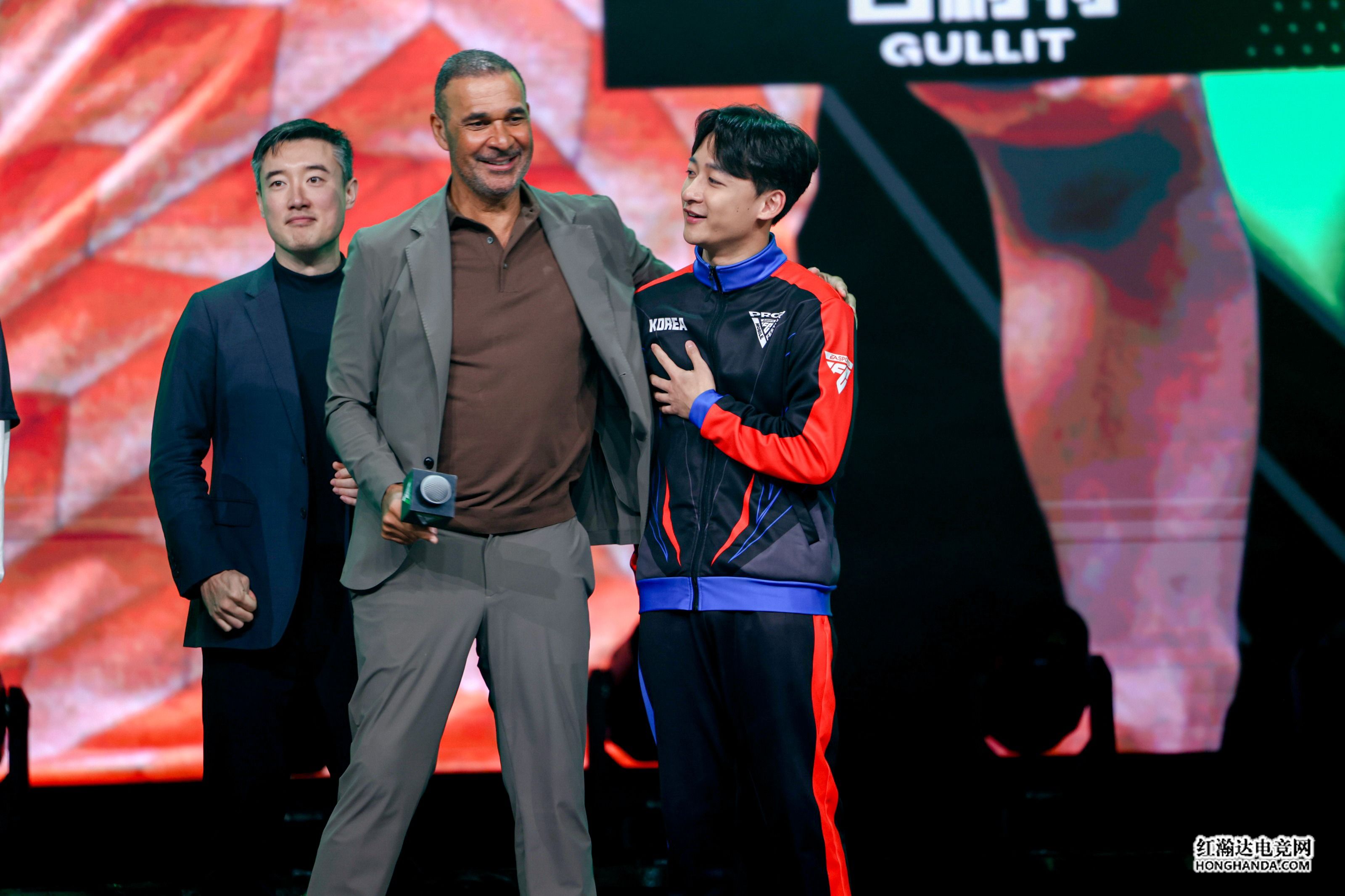 见面会后程,被粉丝们尊称为“大帝”、“李指导”的球星李毅登上了舞台,并在观众们的欢呼声中与古利特开启了一场别开生面的FC系列友谊赛。赛中,古利特作为教练,率领韩国选手李元相在《FC足球世界》和《FC ONLINE》两个项目中分别击败了李毅&粉丝R迪的双人组合,获胜后的古利特仍像年轻时代一样富有娱乐精神,带着满面的笑容与对手、队友接连相拥。