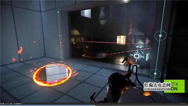 在最初的《传送门》RTX 版中,游戏加入NVIDIA的全景光线追踪技术,也称为路径追踪,尝试为玩家打造一个沉浸式的游戏世界。这项技术能够精确模拟真实世界中的光线属性,从而为游戏中的表面和物体带来逼真的光照、阴影、反射和折射效果。游戏中的每个物体,包括地板、墙壁等,都经过了重新设计,以呈现更加真实的材质细节,如玻璃的反射和金属的光泽。这些改进不仅让游戏的关卡和效果显得更加细致和动态,也让玩家体验到如同现实世界般的光影变化,极大地提升了游戏的真实感和沉浸感。