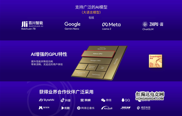 而且它所集成的面向生成式 AI 全新设计的神经网络处理器 Hexagon NPU,还支持调用 CPU 和 GPU 一起参与 AI 运算。