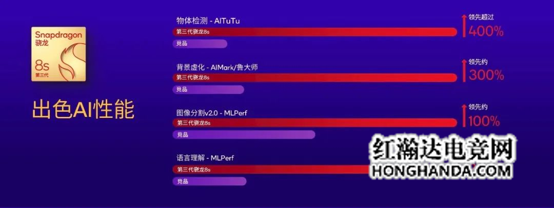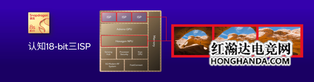 以影像为例,第三代骁龙 8s 集成了认知 18-bit 三 ISP,可通过高达 18bit 的数据采样让摄像头每秒处理数十亿像素。搭配第二代图像分割功能,支持照片和视频实时语义分割,带来比竞品近 2.5 倍的提升。当这一切与芯片强大的 AI 处理器结合,摄像头也真正开始「看见并理解世界」,无论是暗光拍摄的画质表现,还是 AI 识图、修图、扩图等功能,都将得到质的飞跃。 当然,之所以叫「认知」,是因为其在第二代骁龙 8 时便实现了通过 Hexagon 直连的方式,将 ISP 与 Hexagon NPU 直接连接,让 ISP 具备强大 AI 分析的能力,从而在拍摄过程中将 AI 优化提前,实现实时语义分割,让甚至于眼镜反光的每个拍摄细节都能得到更为精细的优化,而且是实时的反馈,从而大大提升手机成像质量和拍摄体验。这就是高通 AI 引擎和 ISP 联手的深藏功与名之处。