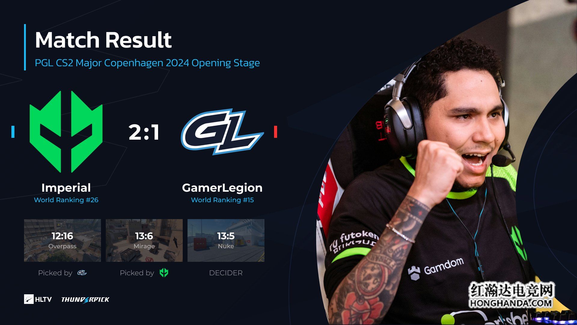 Imperial 2-1战胜GamerLegion,以3胜2负战绩晋级淘汰赛阶段