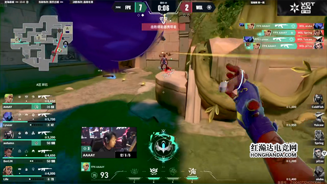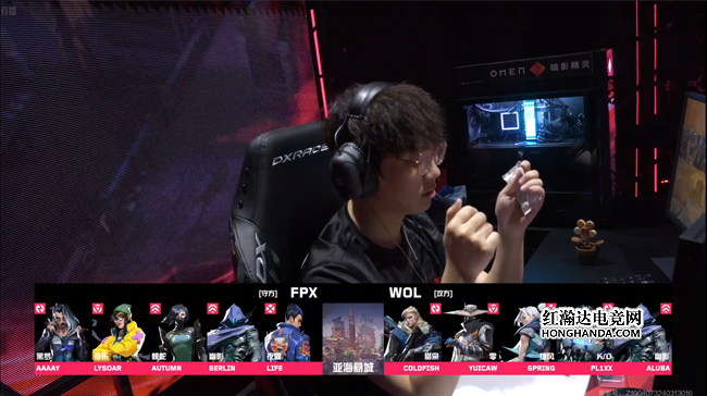 下半场双方攻守互换,FPX手枪局进攻了WOL重点防守的A区,但他们的技能压制让WOL前点两人什么都没做就被清掉,WOL匆忙回防但是无力回天,没有悬念地丢掉了开局两分,分差被进一步扩大。FPX在第14回合的两把轻甲狂徒让他们在WOL的连败奖励局里也并没有太多枪械劣势,他们从容地通过提速A小进一步拿分,把WOL打进ECO局的同时逼近了赛点。WOL在压力之下选择大胆地两人前压中路远点,堵住了正在转点的FPX并且打掉两人,KO临死扔出的碎片溢出把FPX剩下三人的血量压低,FPX强行推进A区结果被Coldfish的神射悉数收割,WOL完成ECO翻盘并且顺势再追一分,FPX选择交出第二个暂停进行调整。暂停结束以后FPX被WOL拖干时间又丢一分,随后继续押宝进攻A区,AAAY在三个队友倒下同时自己被幽影推黑的情况下接住了从A小树位进场的两人,FPX惊险地终结了WOL的追分连胜,接下来通过控中攻B再下一城拿到了赛点。WOL在悬崖边缘用掉最后一个暂停。赛点局WOL故技重施派Spring从中路前压但是被FPX多条枪线秒杀,AAAY也换掉了从A区前压的pl1xx,人数劣势的WOL竭尽全力也无法阻挡FPX的进攻,最终FPX以13-8击败WOL赢下了亚海悬城。