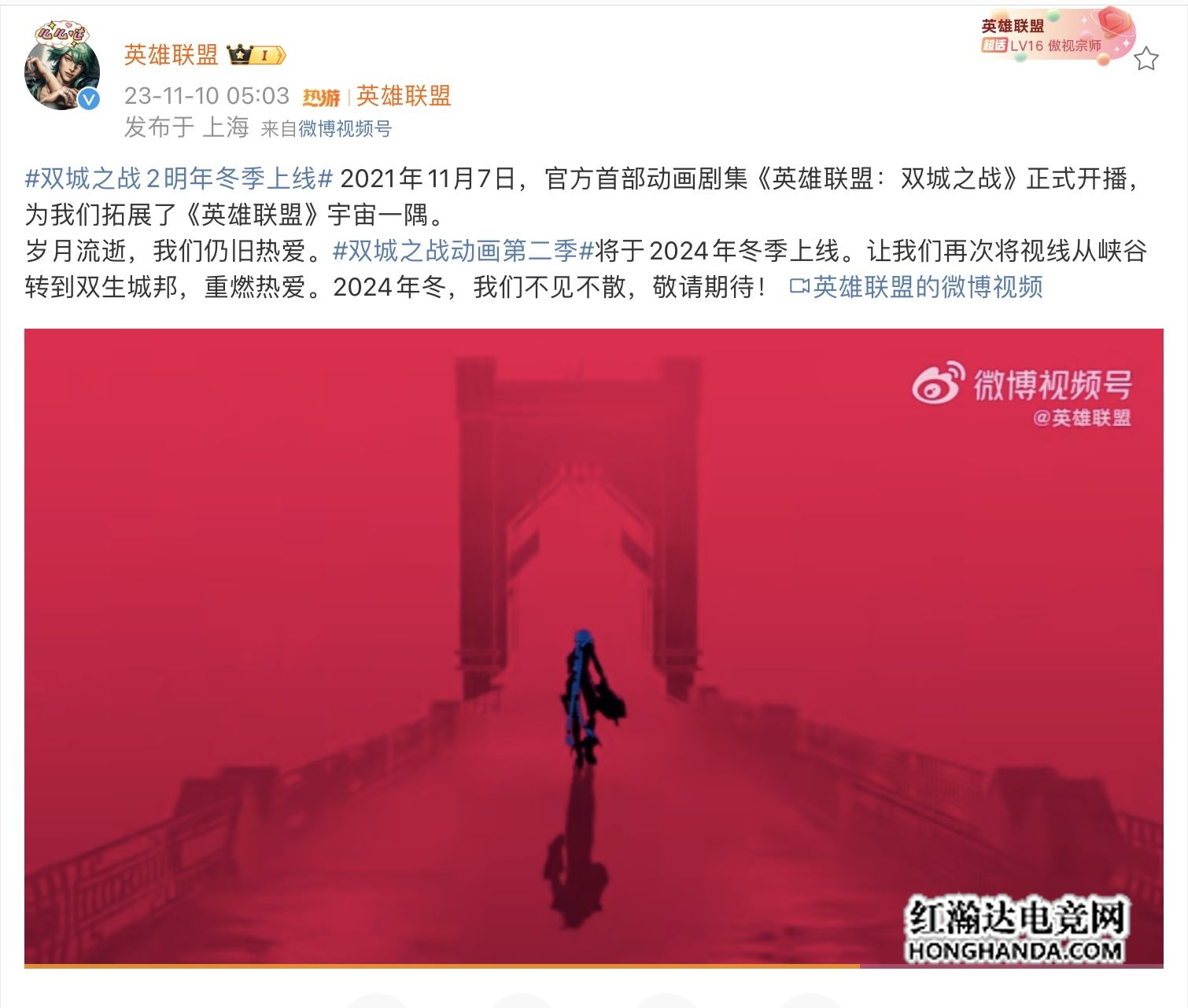 就在今年(2024年)冬季,英雄联盟双城之战2将会上线。