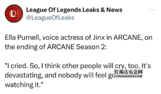 就在近日,双城之战金克丝的配音演员对于双城之战第二季大结局的评论:我哭了,所以我觉得其他人也会哭的,很令人绝望,没有人在看完之后会还能保持好心情!
