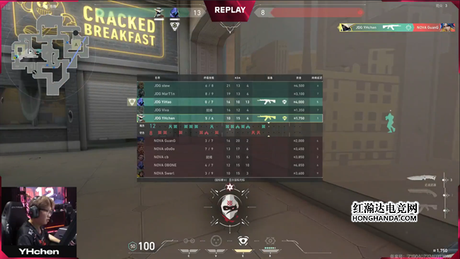 下半场攻守互换,极其悬殊的分差让JDG没有了任何余地,手枪局YHchen的KO收获三杀帮助JDG终结了NOVA的连胜以及开局的前两分。连败奖励局NOVA终于掏出长枪,非常稳健地慢节奏控制中路,随后从A区树位发起突袭,不等JDG回防就控制了局面拿下胜利。第16回合刚开局Swerl的捷风就突到A区大道门外打掉了YiHao的幽影,失去了主要烟位的JDG在回防上的操作空间被进一步压榨,仅存的KO和捷风只能选择保枪同时把赛点让给了NOVA。赛点局到来NOVA继续四人控制中路,见A区小道封烟以后果断从市场进攻B区,瞬间清掉JDG三人,stew仅存的一杆冥驹面对NOVA四人的严防死守最终无力回天,恭喜NOVA让一追二击败JDG,拿到了他们的联赛首胜!