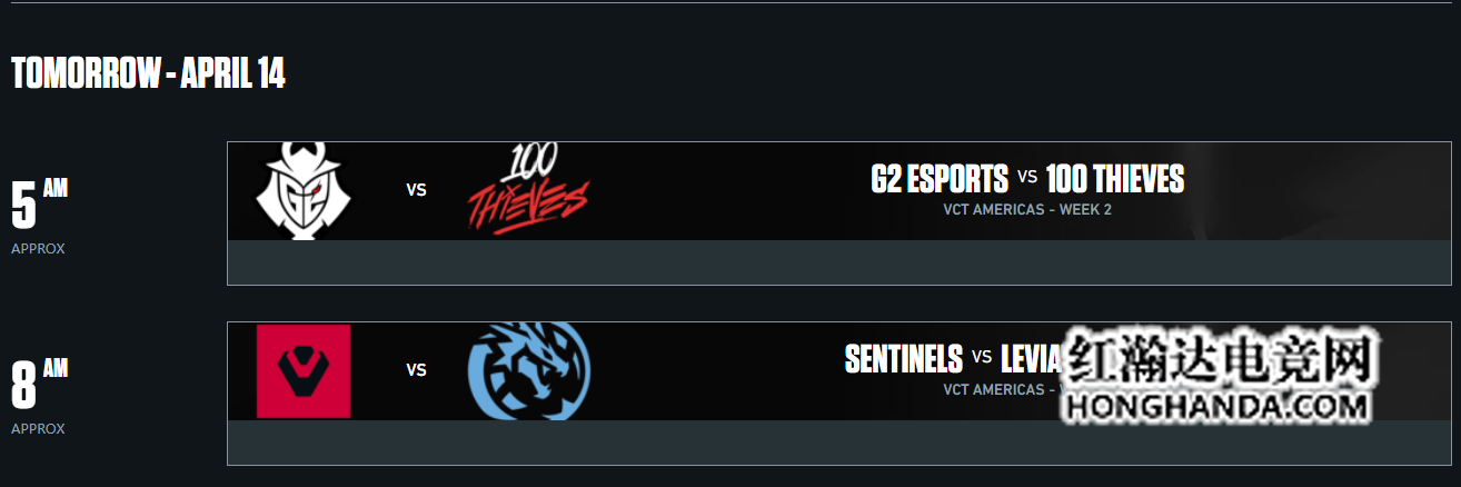 4月14日VCT美洲赛区比赛预告:G2 vs 100T;SEN vs LEV