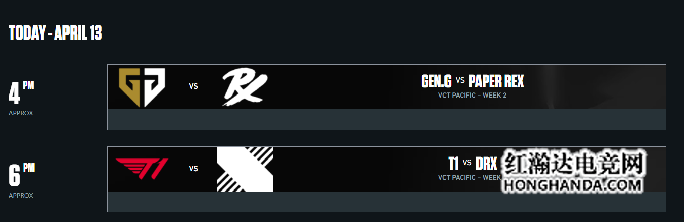 4月13日VCT太平洋赛区比赛预告:GEN vs PRX;T1 vs DRX
