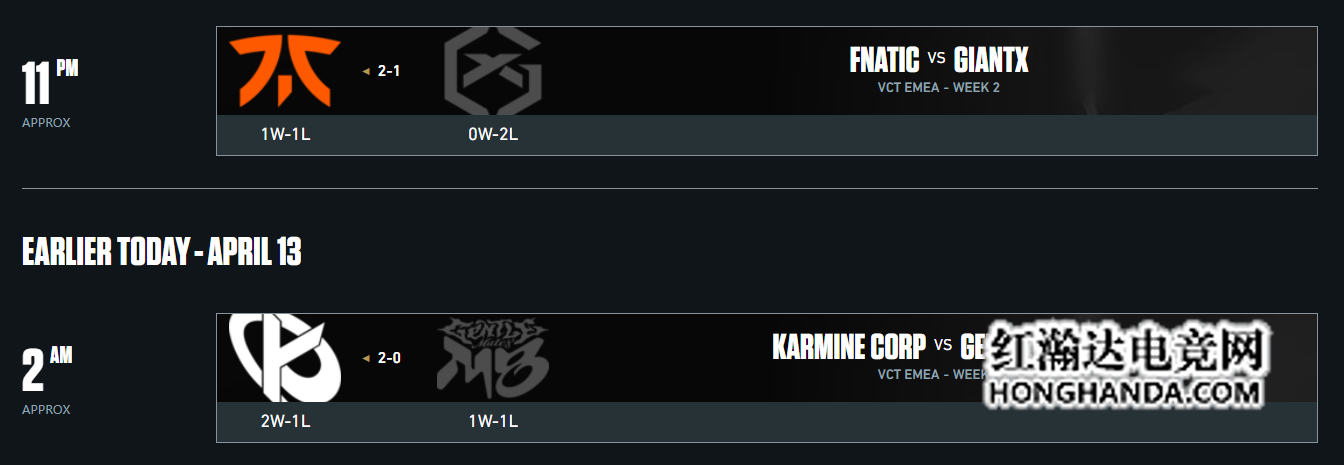 4月12日与13日VCTEMEA赛区比赛:FNC 2-1 GX;KC 2-0 M8
