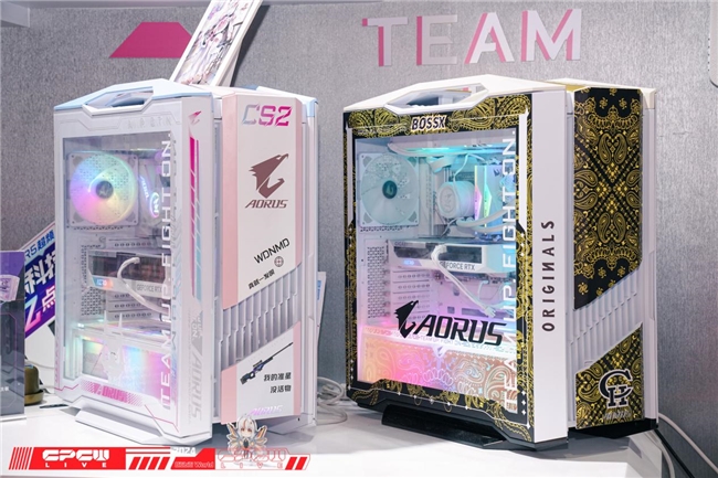 踏入技嘉AORUS雕妹空间,首先看到的就是由AORUS全明星计划带来的谢帝和茄子定制的主机(复刻版),完全不同的定制风格让观众感受到两个人完全不同个性。