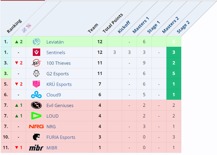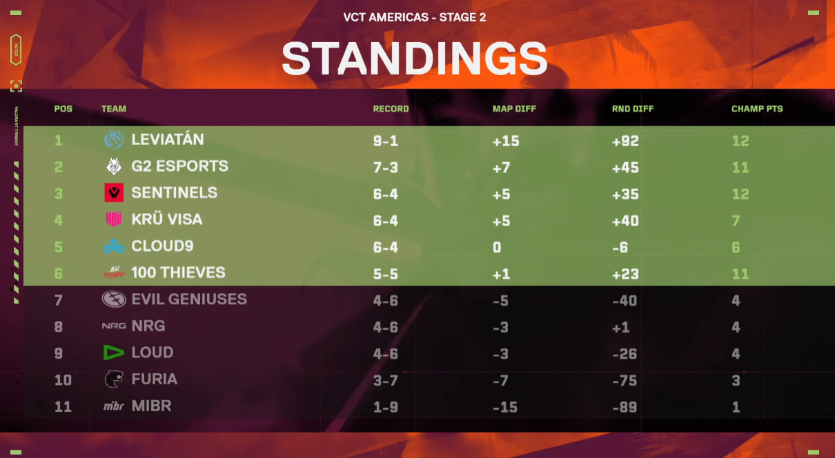 VCT美洲赛区常规赛收官:LEV与G2拿到全胜,SEN位列第三
