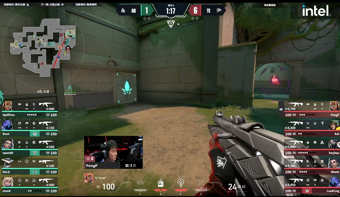 第4回合FengF配合队友平推B点最终收下monk。第5回合FengF三杀后被Bunt收下但TE胜局已定。AG叫出暂停。第6回合TE手感火热,以完胜姿态再次下一分。