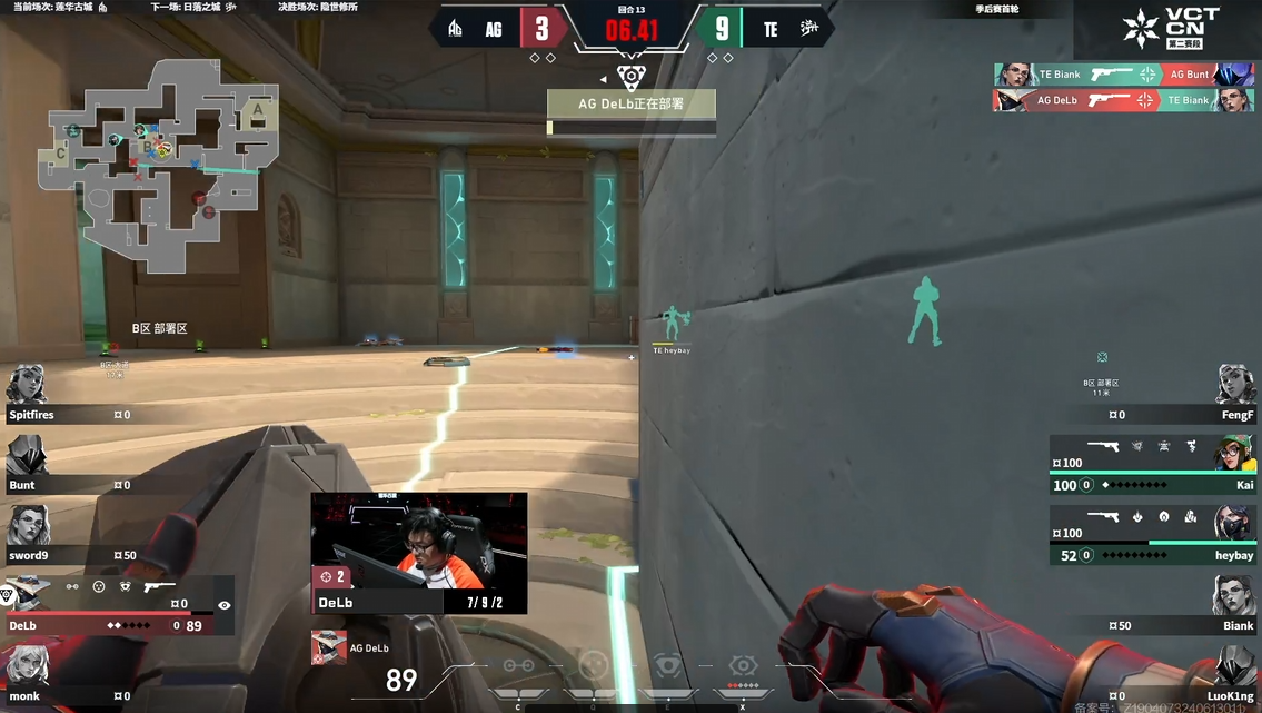 第1回合AG慢摸到AG但时间所剩无几,被TE一换一拖到时间结束无法下包,TE拿到手枪局胜利。第3回合AG奖励局Delb斩获三杀,以两把长枪的代价收下胜利。第4回合Bunt幽影灵性穿梭拿到人数优势,TE劣势抢线回防被Bunt三杀兜住残局。