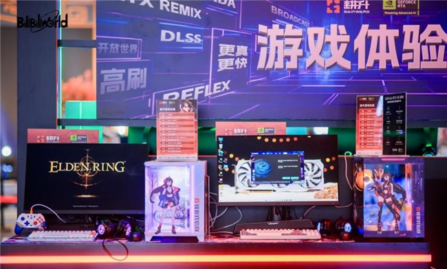 体验区中的每台耕升主机上都安装着众多当前热门的游戏,比如《无畏契约》和《艾尔登法环》等,这些游戏深受玩家们的喜爱。现场提供的所有游戏都加入NVIDIA RTX技术,得益于NVIDIA的强大性能支持,让小伙伴们能够通过NVIDIA DLSS和光线追踪等先进技术,享受到更加卓越的游戏体验!