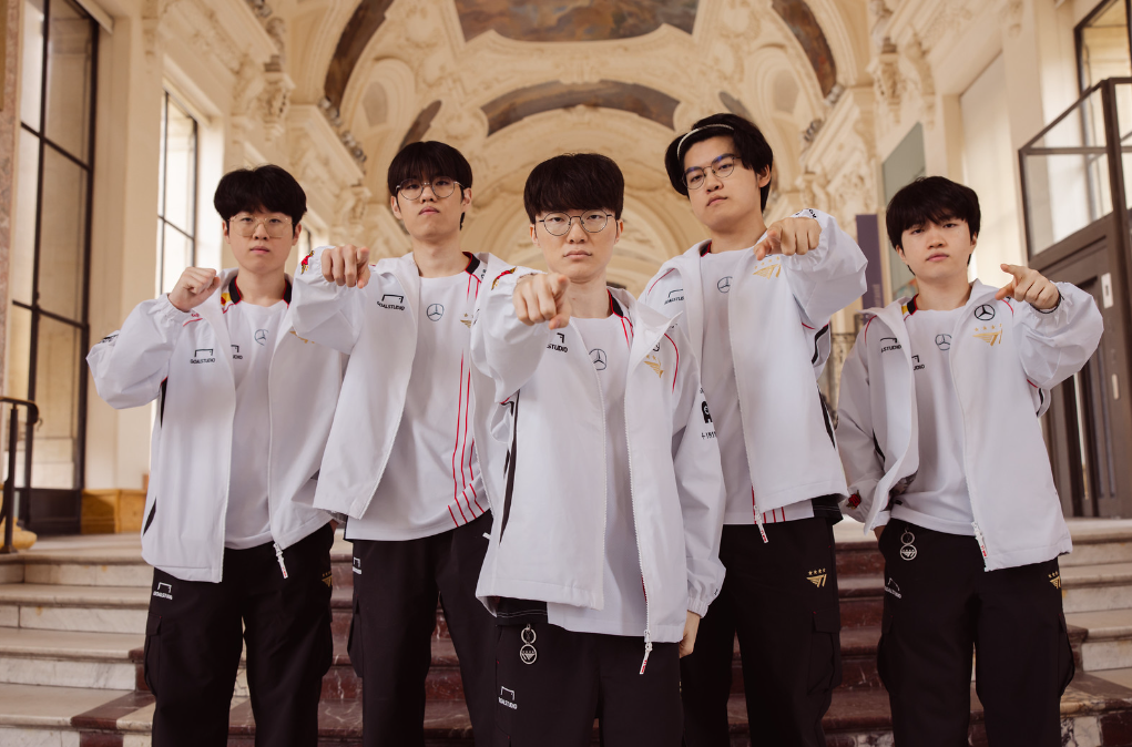 打到28分钟终于爆发团战,双方从河道打到中路,最终还是T1更胜一筹团灭BLG,T1拿下大龙。随后BLG抱团去上路抓人BLG被击杀四人,最终T1赢下比赛。