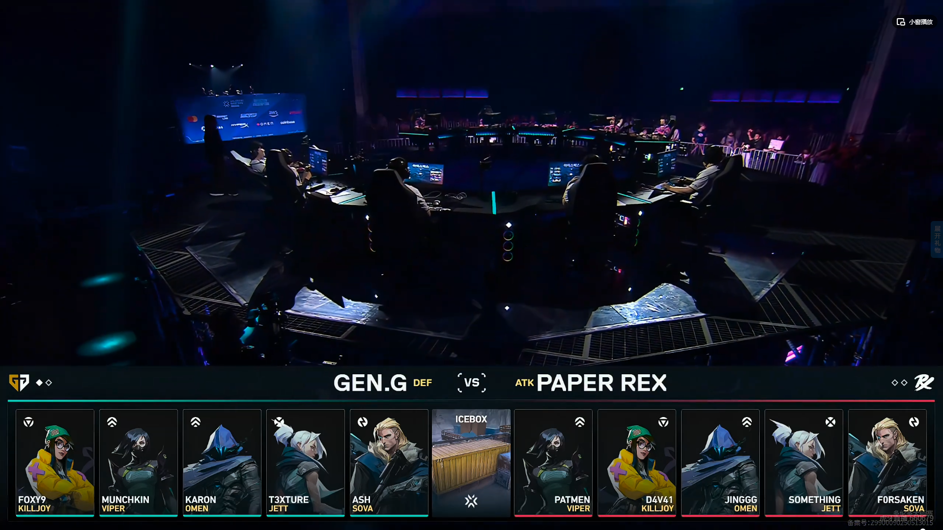 下半场GEN赢下手枪局,第15回合PRX打B赢下奖励分。第16回合两队长枪对决,t3的冥驹直架被逮捕,随后PRX提速B点抓人拿下。PRX连追三分,第18回合PRX拉扯佯攻骗到GEN,但残局被Foxy9点打掉something拿下。PRX进攻变奏追分,再度打出一波三连胜。第22回合GEN三人回防A点,Foxy9烟内强拆拿到赛点。第24回合GEN在B点打掉PRX三人,GEN三打二的回防,Karon打赢最后的残局,GEN 13-11赢下亚海悬城。