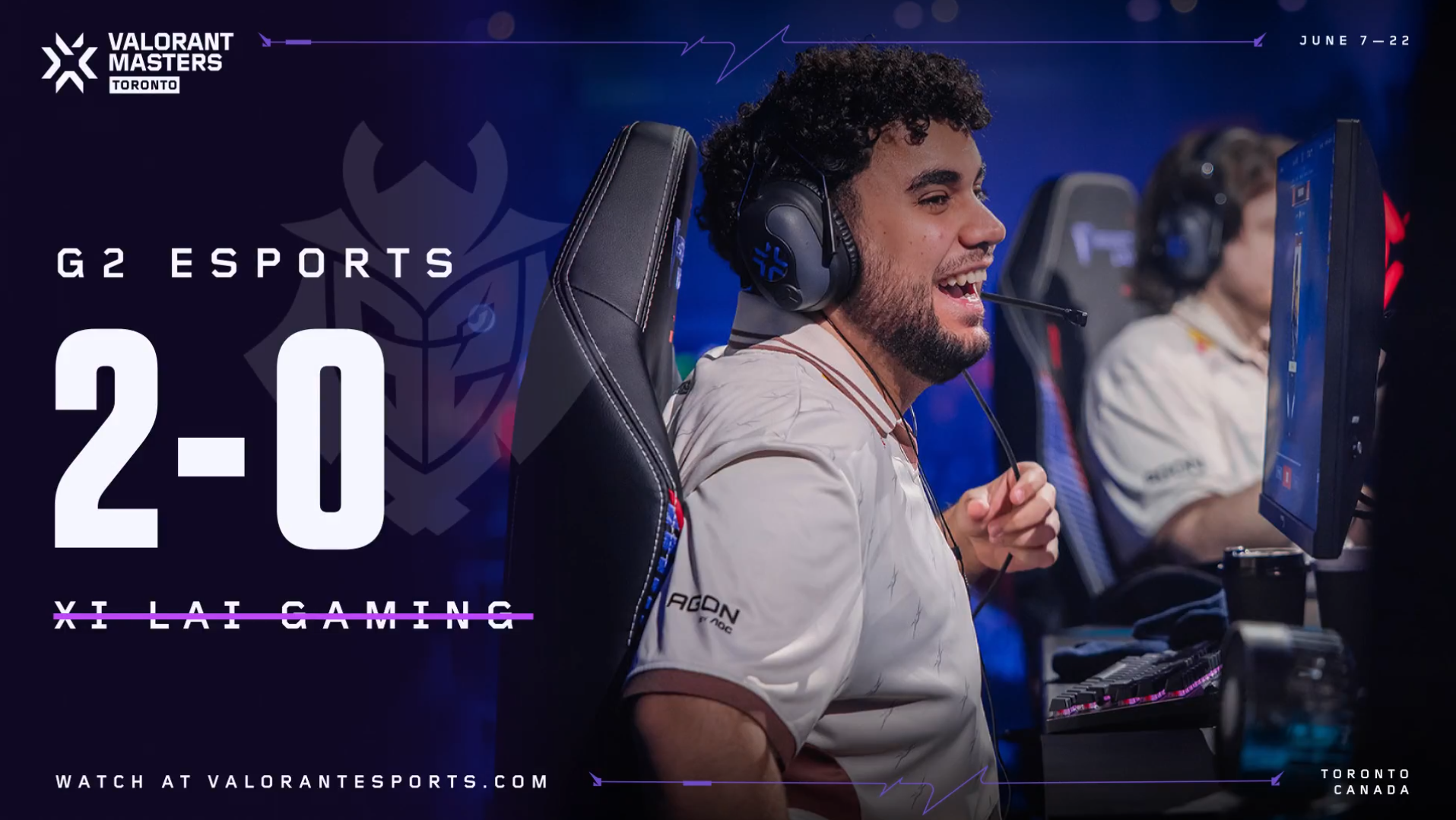 2025无畏契约多伦多大师赛淘汰赛败者组首轮,G2 2-0淘汰XLG。