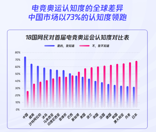 《报告》显示,全球电竞城市影响力前十中中国占据四席,中国用户对电竞奥运会的认知与肯定度亦全球领先。
