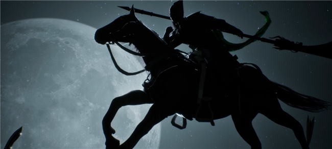 明月低悬,烽火联营,一人一刀一马疾驰而来,重现关羽千里走单骑经典场景。