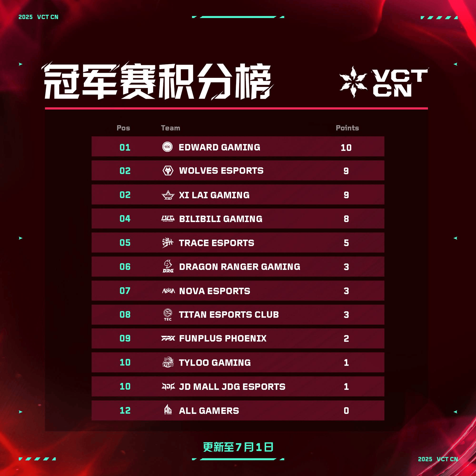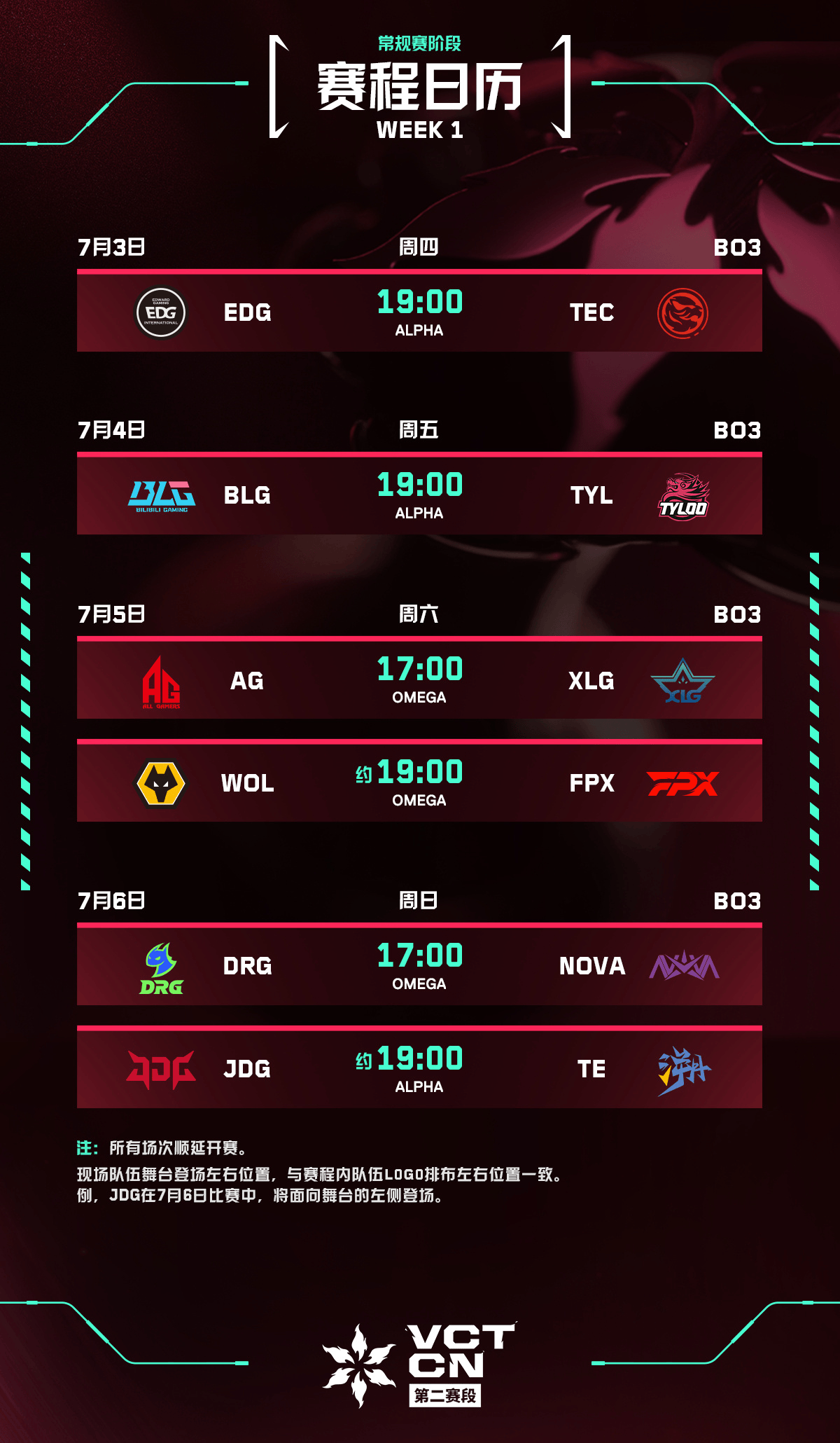 2025无畏契约冠军巡回赛CN联赛第二赛段(以下简称“VCT CN联赛第二赛段”)常规赛将于7月3日在位于上海的无畏竞技场正式拉开序幕。十二支2025年VCT CN联赛队伍将展开第二赛段冠军及冠军赛积分的激烈争夺。最终在第二赛段季后赛排名前二的队伍,和除这两支队伍外冠军赛积分最靠前的两支队伍,共计四支队伍将代表CN赛区,出征2025无畏契约全球冠军赛!