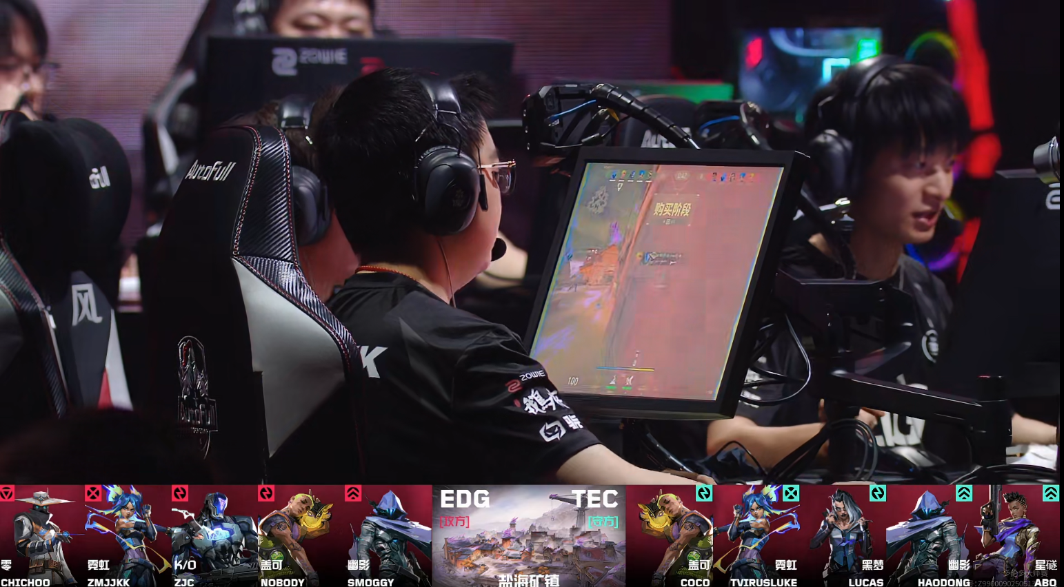 上半场EDG赢下手枪局,第3回合EDG进攻些许着急,在没有等待烟展开后就开始进点,被TEC打掉两个,爆能器掉在点内,TEC赢下奖励分。第4回合TEC守住A点赢下首个长枪局,第5回合EDG抱团提速打A,康康霓虹正义冲锋一马当先,EDG打出一波翻盘局。两队各自完成一局翻盘,比分却一直无法拉开。第10回合nobody盖可开大抓到Abo,康康跟上直接将其刀掉,上半场EDG 7-5 TEC。