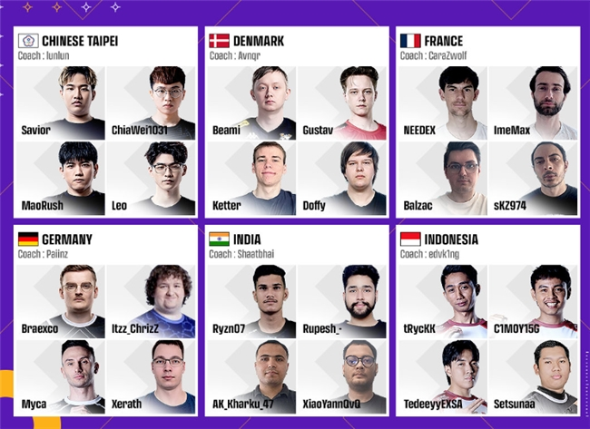 其他16支战队为:加拿大、中国台北、丹麦、法国、德国、印度、印度尼西亚、日本、马来西亚、挪威、菲律宾、波兰、西班牙、瑞典、土耳其、英国