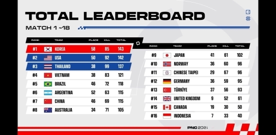 在去年的PNC2024上,总共有来自全球16支顶尖队伍齐聚一堂,展开了18场扣人心弦的对决。作为东道主的韩国队以143总积分拿下了冠军,而美国赛区以一分之差屈居亚军,泰国赛区以137分拿到了季军,PCL赛区则是以115分排名第7。