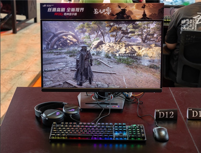 在现场供玩家试玩的显示器中,还有一款ROG绝神X双模电竞显示器。27英寸的Fast IPS面板设计,支持4K 160Hz与FHD 320Hz双模式随意切换。当然玩家想要着重感受3A大作的视觉震撼式,4K分辨率和160Hz刷新率模式下的细腻画质与流畅动效,能够让每一位玩家心驰神往,沉醉其中。而当玩家想要着重体验操作与剧情的设计,动作与对抗的巧思时,切换到FHD 320Hz疾速刷新率模式下,通过高帧率表现与低至1ms的响应时间,感受丝滑与流畅感,也可以让玩家切身体会到《影之刃零》这款3A大作在操作上的精心设计。多重的游戏体验,只需要一台显示器就能完成,这就是ROG绝神X双模电竞显示器所具备的独特魅力!