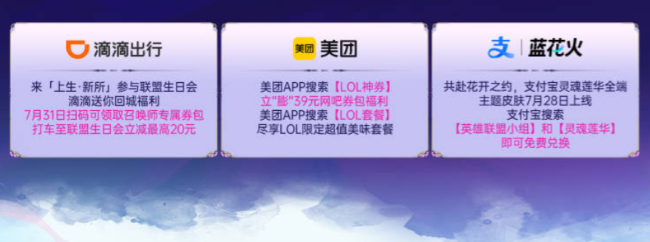 此外,还有滴滴出行「上生 · 新所」定向优惠、支付宝主题皮肤、美团网吧神券&超值限定套餐等优惠活动为召唤师们送上更多福利!